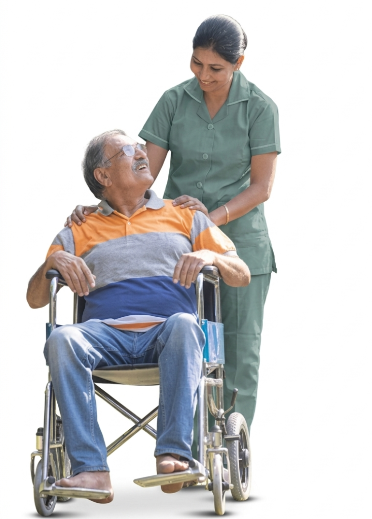 Our services include trained attendants, specialized nursing care, senior care, antenatal and postnatal care, mother and baby care, Ayurvedic postnatal care, palliative care, ICU setup at home and specialized rehabilitation services.
